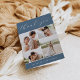O casamento elegante agradece-vos que os cartões apresentam quatro fotografias organizadas num esquema de colagem em grelha num fundo azul empoeirado. "Obrigado" aparece no topo na escrita de caligrafia, com seus nomes na parte inferior em caracteres clássicos de blocos. Adicione uma mensagem pessoal e uma assinatura ao dentro, juntamente com uma foto adicional.