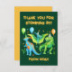 Este obrigado de dinossauro agudo que você design apresenta três dinossauros pintados manualmente, como um t rex, pteradactyl e um dino de pato com balões de festa divertida, chapéus de festa e confete. Este design tem uma paleta colorida de verde, azul e laranja. Você pode modificar todo o texto neste design para se adequar ao seu evento. A parte de trás é a vazio de você escrever uma nota manuscrita, se preferir. Veja toda a coleção correspondente.