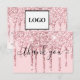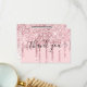 Cartão de Agradecimento com Código Promocional Moderno de Gotas de Brilho Rosa Glamour