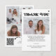 Casamento engraçado e casual tipografia ousada, cartões de agradecimentos simples e minimalista moderno, preto e branco, com 4 fotos, código QR para a galeria de fotos, corações e modelo de texto.