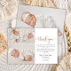 Simples Rosa Elegante Elegante Dourado Script Recém-Nascido 3 Foto Colagem Cartões de agradecimentos Baby Girl. Apresenta um belo texto de "obrigado" em um script de letra de tipo alfanumérico caligrafia manuscrito cursivo em folha de ouro falso rosa (ou folha de papel rosa) e mensagem pessoal pré-feita. 3 Foto na frente e no verso (1) uma foto horizontal do bebê cheio. Fácil de personalizar com sua foto de bebê e detalhes.
