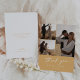 Este cartões de agradecimentos de colagem de fotos de casamento de marigold amarelo boho é perfeito para um casamento minimalista. A design boêmica moderna, colorida e amarela brilhante, apresenta uma caligrafia rústica simples com um estilo único, mas clássico. Personalize o cartão com três fotos do dia do seu casamento, seus nomes e data do casamento. Exclua o texto de exemplo na parte traseira do cartão para que você possa escrever uma nota atenciosa em cada convidado ou mandar imprimir uma mensagem.