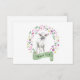 Lindo cartãozinho de agradecimento que você pode personalizar no verso. O design apresenta um doce cordeirinho enquadrado por flores rabiscadas e uma faixa de agradecimento em verde primavera. O verso do cartão diz "espero que você saiba o quanto sua gentileza foi apreciada... carinho e agradecimentos" seguido pelo(s) seu(s) nome(s). O modelo está pronto para sua personalização, mas se desejar editar a mensagem de agradecimento, clique em "personalizar mais".
