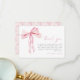 Um cartão de agradecimento com laço rosa que apresenta um gráfico de laço em aquarela em tons de rosa suave e uma fonte moderna. Este cartão plano tem a palavra "obrigado" e uma mensagem de agradecimento editável na frente e um padrão de laço rosa no verso. Este cartão é a maneira perfeita de agradecer aos convidados pelos presentes do chá de bebê, casamento ou festa. Combine com qualquer coisa da coleção BLTYHE para um visual coeso.