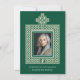 Este tradicional design católico irlandês apresenta uma cruz e uma estrutura de trabalho em branco, em forma de cruz Celta, contra um fundo verde profundo, simbolizando a vida eterna e a herança cristã dos fiéis falecidos. O monograma Chi-Rho afirma a esperança da Ressurreição através do Cristo. Ideal para acordares, massas funerárias, e guardas de memória, esta disposição honra lindamente a vida de uma querida filha da Igreja com solenidade e graça.