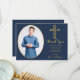 Cartão De Agradecimento Confirmação Blue Dourado Cross Boy Foto Obrigado