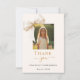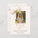 Um cartões de agradecimentos de Confirmação moderno e elegante para uma garota. Um fundo de cor creme macio, decorado com um arco grande. Letras pretas e ouros. Na frente do texto: Obrigado, foto, nome e um encontro. Back: Modelo para sua nota de agradecimento e seu nome.