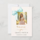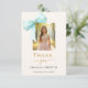 Um cartões de agradecimentos doce 16 moderno e elegante. Um fundo de cor creme macio, decorado com um arco de cor verde, grande e lacrado. Letras pretas e ouros. Na frente do texto: Obrigado, nome e data. Adicione uma foto. Back: Modelo para sua nota de agradecimento e seu nome.