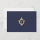 Um marinho azul e um primeiro Cartões de agradecimentos de comunhão dourado recomendado para um garoto. Na metade esquerda, há uma foto-criança marcadora que você deve substituir. Na metade direita, há uma crista de ouro falso vintage com uma cruz nela e sob ela, texto de ouro sobre fundo azul marinho. O título "Obrigado" e o final com o nome da criança são escritos em um roteiro caligráfico, a mensagem principal em bonés. A foto marcadora de um garoto de terno azul marinho é IA gerada com Photoshop.