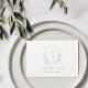 Monograma emoldurado por uma coroa de folhas botânicas ilustradas à mão, elegantes, em dourado falso e branco, simples e sofisticado. Ótimos cartões de agradecimento para casamento moderno clássico, casamento formal simples, casamento elegante em jardim botânico.