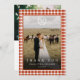 Elegante Cartão de Agradecimento com Foto e Monograma com Xadrez Vermelho-Laranja Rústico.