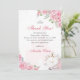 Cartão de agradecimento da coroa floral rosa Quinceanera