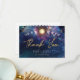 Cartão de Agradecimento da Fase Lunar Celestial. Um ótimo cartão de agradecimento pós-casamento que você pode personalizar na frente e escrever uma mensagem sincera para seus convidados no verso. Este cartão apresenta um céu noturno de galáxia roxa e azul na frente, seguido por uma fase lunar brilhante. O verso é branco e apresenta uma fase lunar colorida de galáxia sobre branco e é onde você escreve um bilhete.