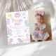 Cartão de agradecimento de aniversário com foto do dinossauro rosa T-Rex