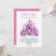 Celebre o primeiro aniversário do seu pequeno com este encantador cartão de agradecimento de aquarela de castelo rosa, perfeito para expressar gratidão com um toque de magia de conto de fadas.