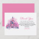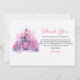 Celebre o primeiro aniversário do seu pequeno com este encantador cartão de agradecimento de aquarela de castelo rosa, perfeito para expressar gratidão com um toque de magia de conto de fadas.