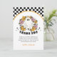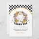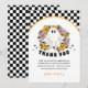 Adicione um toque de charme retrô à sua celebração de Halloween com este cartão de agradecimento, apresentando um fantasma fofo com flores e um clima vintage divertido — perfeito para a festa de aniversário assustador de uma garota.