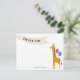 Este cartão de agradecimento plano tem muito espaço para escrever uma simples mensagem de "obrigado" aos doadores de presentes de aniversário após a celebração e apresenta uma faixa divertida e uma girafa usando um chapéu de festa com balões amarrados à sua cauda.