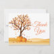 Cartão de agradecimento de árvores de outono e abóbora. Fundo branco. Letras laranjas. Amor e agradecimento, fonte de caligrafia bonita. Adicione sua mensagem no verso ou deixe em branco e escreva à mão. Para personalização adicional, clique no botão "Personalize" e use nossa ferramenta de design para modificar este modelo.
