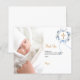 Um cartão de agradecimento de batismo moderno e elegante. Um fundo branco chic decorado com uma coroa floral azul aquarelada, um laço e uma cruz dourada. Personalize e adicione sua foto da criança, nota de agradecimento e nome.
