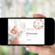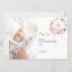 Um cartão de agradecimento de batismo moderno e elegante. Um fundo branco chic decorado com uma grinalda floral rosa em aquarela, um laço e uma cruz dourada. Personalize e adicione sua foto da criança, nota de agradecimento e nome.