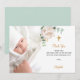 Cartão de agradecimento de batismo floral branco d