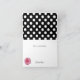 Cartão de agradecimento elegante feito em preto, com bolinhas brancas. Gráficos de uma faixa rosa cruzam o meio do cartão, com texto preto escrito Agradecido. Personalize o texto dentro e fora para atender às suas necessidades.