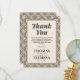 Expresse sua gratidão com este elegante cartão de agradecimento de casamento inspirado no Art Déco. Com uma moldura geométrica sofisticada em verde sage e rosa poeirento, a frente fornece um belo espaço para sua mensagem personalizada de agradecimento. O verso apresenta um design totalmente padronizado com um monograma clássico. Uma maneira perfeita e sofisticada de agradecer aos seus convidados, mantendo a estética moderna e vintage do seu conjunto de casamento.