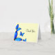 Lindo cartão de agradecimento de casamento, com gráficos encantadores de borboletas azuis em um fundo amarelo pálido. Uma maneira maravilhosa de enviar agradecimentos após o seu casamento ou chá de noiva.