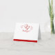 Cartão de nota simples com um par de corações vermelhos em espiral e texto personalizado na frente. Pode ser usado como cartão de agradecimento de casamento.