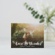 Sobreposição de efeito especial adiciona facilmente sombreamento e "amor e agradecimento" em cima da foto do seu casamento! Dê amor e agradecimentos aos convidados que vieram ao seu casamento! Envie sua foto full-bleed e ela será automaticamente sobreposta com uma simples sobreposição preta transparente e o texto "Amor e Agradecimento" em um estilo de caligrafia tipográfica fofa e pincelada de aquarela pesada. Lindo cartão postal de agradecimento de casamento personalizável com 1 foto. Agradeça a todos pelos presentes e presença carinhosos.