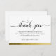 Cartão de agradecimento tradicional minimalista e limpo para presente de casamento com texto preto em fundo branco simples, fontes de texto elegantes e a opção de adicionar uma foto do casal casado no verso. Este design clássico, simples e elegante com folha dourada é preto e branco com detalhes em fonte de texto.
