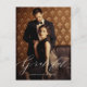 Elegante cartão postal de agradecimento de casamento com roteiro branco inclui uma mensagem de agradecimento editável e endereço de devolução no verso do cartão, e uma foto com caligrafia grata na frente. Envie seus agradecimentos e gratidão aos seus convidados de casamento por sua presença no seu dia especial, com este clássico cartão postal de foto.