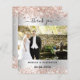 Um cartão de agradecimento de casamento moderno com foto. Um fundo com aparência prateada falsa decorado com confetes em rosa ouro. Personalize e adicione sua foto e nota de agradecimento.