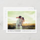 Este modelo de cartão de agradecimento de casamento com foto moderno e simples apresenta seus nomes e data abaixo da foto junto com 'AMOR & AGRADECIMENTO'. Você pode optar por alterar a fonte, pontuação ou cor usada para vários elementos de texto deste design na frente e/ou verso. Por exemplo, você pode optar por alterar a cor do texto 'AMOR & AGRADECIMENTO'. Escolhemos um tom laranja muito claro e pálido para o fundo no verso,