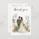 Celebre o seu casamento com estilo com este elegante Cartão de Agradecimento, apresentando uma ilustração romântica de uma noiva e um noivo rodeados por verdejante folhagem botânica e tons florais quentes.