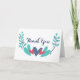 Cartão de Agradecimento de Casamento Corações e Vinhas colorido e caprichoso com uma vinheta estilizada e charmosa e uma borda de coração em uma bonita combinação de turquesa, azul e vermelho. Este design moderno e atual é fácil de personalizar com os detalhes do seu casamento.