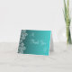 Um design de imagens Digitalbcon apresentando uma cor azul turquesa e design Damask com uma variedade de imagens personalizadas, formas, padrões, estilos e fontes neste cartão de agradecimento de convite de casamento "Damask Turquesa" único. Este design elegante e atraente vem completo com letras de texto personalizadas para se adequar ao seu próprio cumprimento. Este design especial combina com os designs de cartões de convite de casamento disponíveis em vários tamanhos, bem como cartão de RSVP e etiquetas de endereço de devolução.