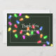 Cartão de agradecimento de casamento de Natal com luzes de Natal brilhantes e brilhantes.
