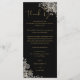 Um cartão de agradecimento de recepção de casamento floral gótico de rosas pretas e douradas. Personalizado com sua mensagem especial de agradecimento em tipografia elegante. Um agradecimento especial para seus convidados. Concebido por Thisisnotme©