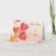 Este cartão de agradecimento de casamento dobrado moderno tem um esquema de cores rosa salmão, rosa suave e laranja com muitas tulipas alinhadas à esquerda e na parte inferior do convite. Na parte superior e do lado direito, está escrito Obrigado. No interior, você pode personalizar facilmente a mensagem. As cores e o design deste convite de casamento tornam-no adequado para um casamento de primavera ou verão.