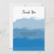 Este design apresenta tons de aquarela azul da praia. As belas cores azuis contrastam entre si, criando a mistura do oceano. Um padrão simples e elegante de ondas em aquarela cria o equilíbrio perfeito entre o geométrico e os traços de pintura à mão livre. Design moderno de praia com um toque de simplicidade e elegância. Este design é ideal para um destino de praia ou um casamento com tema azul. Design perfeito para cartão de agradecimento de casamento de praia azul de verão. Convites de casamento e outros itens de papelaria correspondentes também estão disponíveis.