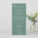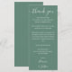 Um cartão de agradecimento de recepção de casamento elegante na cor eucalipto verde. Personalizado com sua mensagem especial de agradecimento em tipografia estilosa. Um agradecimento especial aos seus convidados. Concebido por Thisisnotme©