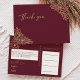 Este cartão-postal de agradecimento de casamento floral dourado burgundy apresenta um cenário sofisticado e magnífico de cor de merlot escuro com caligrafia dourada elegante e enfeites florais dourados. A história de cores em tons de joia e os acentos botânicos boêmios dourados, juntamente com a escrita delicada minimalista, criam uma estética moderna régia e romântica que atinge um equilíbrio perfeito entre o clássico tradicional vintage e o contemporâneo casual, tornando-o uma escolha fácil para uma variedade diversificada de casamentos e eventos. Como acontece com todos os nossos designs, se tiver alguma dúvida ou pedido especial para produtos coordenados, por favor entre em contato conosco.
