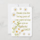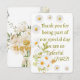 Expresse sua gratidão sincera com este cartão de agradecimento de casamento floral elegante. Com delicadas margaridas brancas e amarelas na frente com a mensagem "Obrigado por fazer parte do nosso dia especial, somos muito gratos", e um design de buquê delicado com as palavras "AMO VOCÊ" no verso, este cartão é perfeito para mostrar apreço aos seus convidados de uma maneira calorosa e memorável