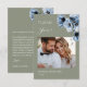 Flores azuis transparentes em uma foto personalizada com um texto de agradecimento alinhado à esquerda.