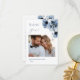 Flores azuis transparentes em uma foto personalizada com um texto de agradecimento alinhado à esquerda.