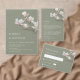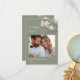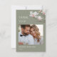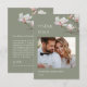 Flores de arte fina rosa claro em uma foto personalizada com um texto de agradecimento alinhado à esquerda em um fundo verde sage.