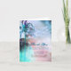 cartão de agradecimento de casamento na praia com gradiente azul turquesa aquarela com luzes penduradas nas palmeiras.