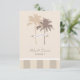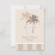 Cartão de nota de agradecimento de casamento com tema de praia apresenta uma faixa de "obrigado" enrolada em torno de duas palmeiras. O formato moderno de cartão plano inclui espaço no verso para uma mensagem pessoal. A "Shoreline Chic" Coleção de convites e papelaria de casamento apresenta cores tropicais, ilustrações de estrelas-do-mar, conchas, palmeiras e listras. Estilo simples e elegante, perfeito para um destino de casamento à beira-mar. Cores neutras: Marfim, Branco e Areia